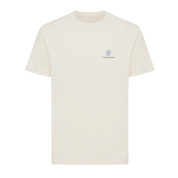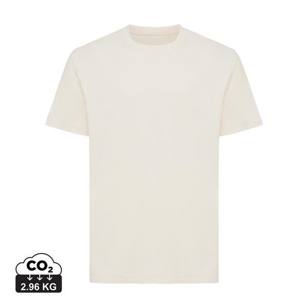 Koszulka, unisex, luźny krój, okrągły dekolt, krótkie rękawy, wykonana w 50% z bawełny z recyklingu i w 50% z bawełny organicznej o gramaturze 180 g/m2, posiada wbudowany znacznik AWARE™, który potwierdza wykorzystanie materiałów z recyklingu, posiada kod QR na metce, który prowadzi do cyfrowego paszportu produktu, 2% wpływów z każdego sprzedanego produktu z kolekcji Impact jest przekazywane na rzecz Water.org, ślad węglowy produktu: 2,96 kg CO2