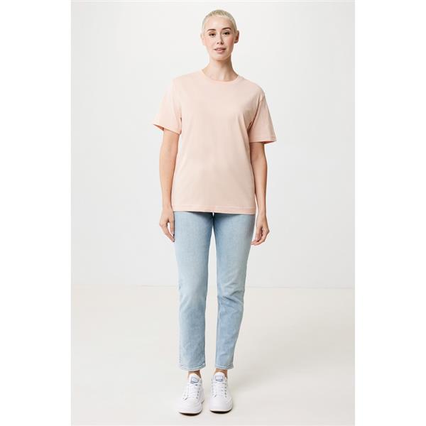 Koszulka, unisex, luźny krój, okrągły dekolt, krótkie rękawy, wykonana w 50% z bawełny z recyklingu i w 50% z bawełny organicznej o gramaturze 180 g/m2, posiada wbudowany znacznik AWARE™, który potwierdza wykorzystanie materiałów z recyklingu, posiada kod QR na metce, który prowadzi do cyfrowego paszportu produktu, 2% wpływów z każdego sprzedanego produktu z kolekcji Impact jest przekazywane na rzecz Water.org