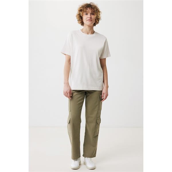 Koszulka, unisex, luźny krój, okrągły dekolt, krótkie rękawy, wykonana w 50% z bawełny z recyklingu i w 50% z bawełny organicznej o gramaturze 180 g/m2, posiada wbudowany znacznik AWARE™, który potwierdza wykorzystanie materiałów z recyklingu, posiada kod QR na metce, który prowadzi do cyfrowego paszportu produktu, 2% wpływów z każdego sprzedanego produktu z kolekcji Impact jest przekazywane na rzecz Water.org, ślad węglowy produktu: 3,82 kg CO2