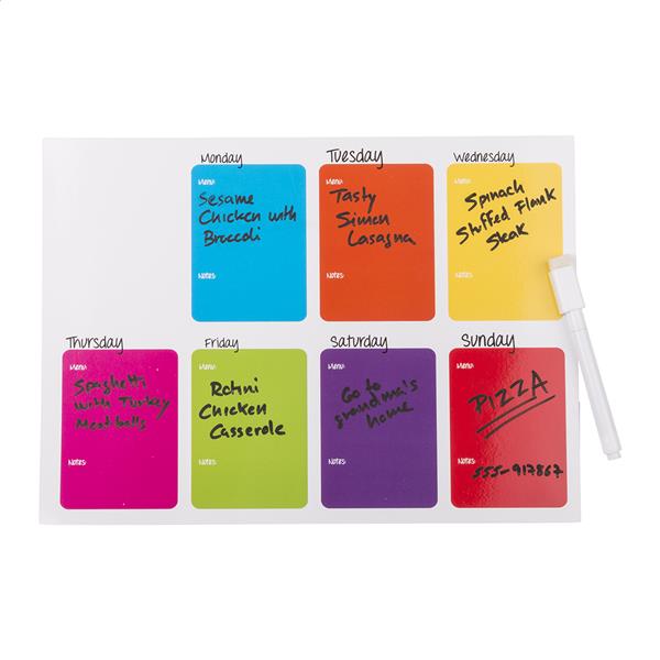 Magnes na lodówke z tygodniowym kalendarzem, markerem oraz czyścikiem.