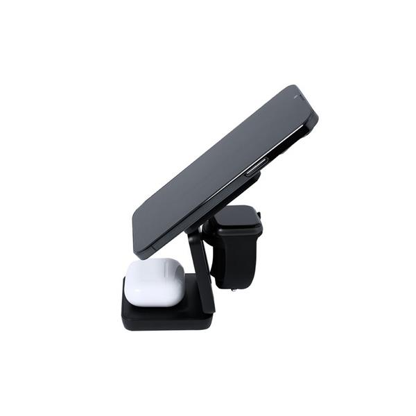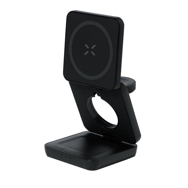Magnetyczna ładowarka bezprzewodowa 15W, 3 w 1, działa z urządzeniami posiadającymi możliwość ładowania indukcyjnego, funkcja magnetyczna działa tylko z kompatybilnymi urządzeniami, 3 cewki ładowania bezprzewodowego (15W, 5W, 2.5W), wejście USB-C 9-12V/2.2-1.67A, kabel USB-C w komplecie, stojak na telefon, składana, produkt wykonany z RABS