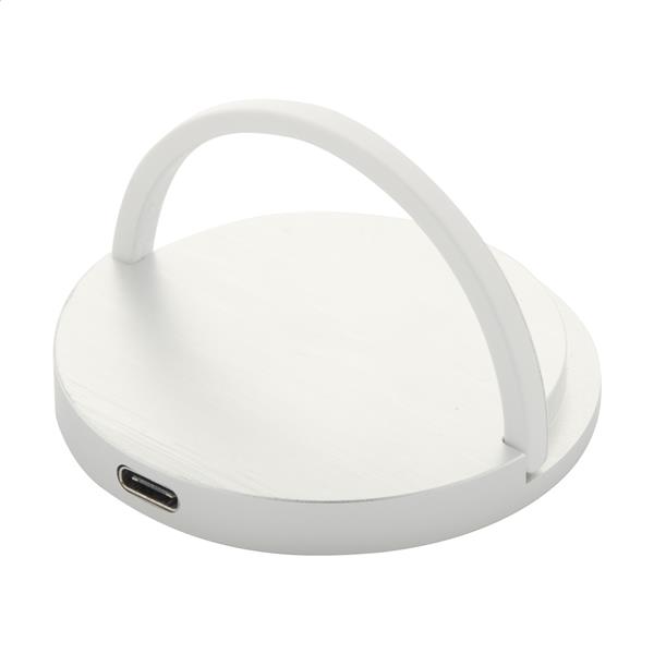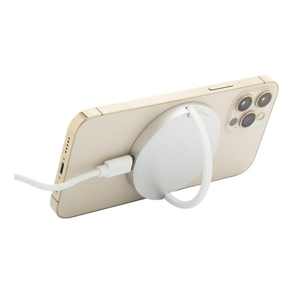 Magnetyczna, szybka ładowarka indukcyjna (15 W) z pierścieniem na telefon komórkowy z aluminium pochodzącego z recyklingu i obudową z tworzywa ABS pochodzącego z recyklingu. Kompatybilna z iPhonem® 12 lub nowszym. W zestawie kabel do ładowania USB-C.