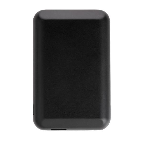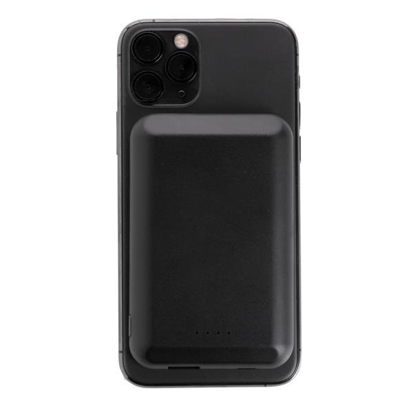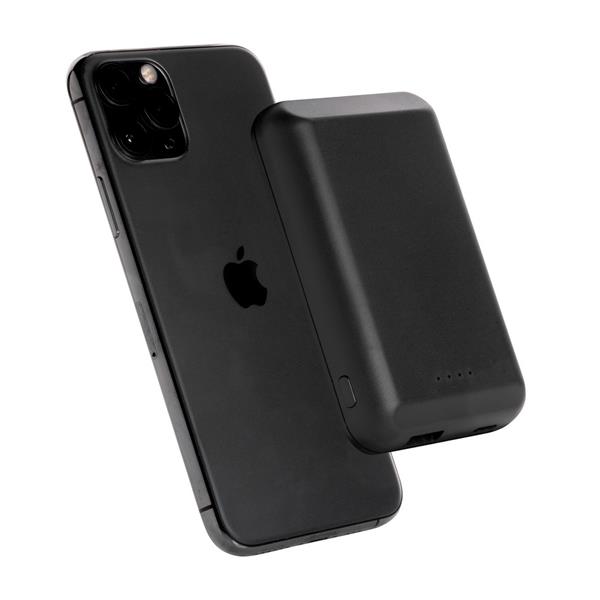 Magnetyczny, bezprzewodowy power bank 5000 mAh, ładowarka bezprzewodowa 5W, wyjście USB do ładowania za pomocą kabla, 11 wbudowanych magnesów N52H odpornych na ciepło, dzięki idealnemu rozłożeniu magnesów power bank jest kompatybilny z telefonem iPhone 12, w przypadku urządzeń Android działa jak standardowa ładowarka bezprzewodowa, działa z telefonami posiadającymi możliwość ładowania indukcyjnego, wejście 5V/1.5A, wyjście 5V/1A, 100 cm kabel micro USB z TPE w komplecie, nie zawiera PVC, ślad węglowy produktu: 3,19 kg CO2