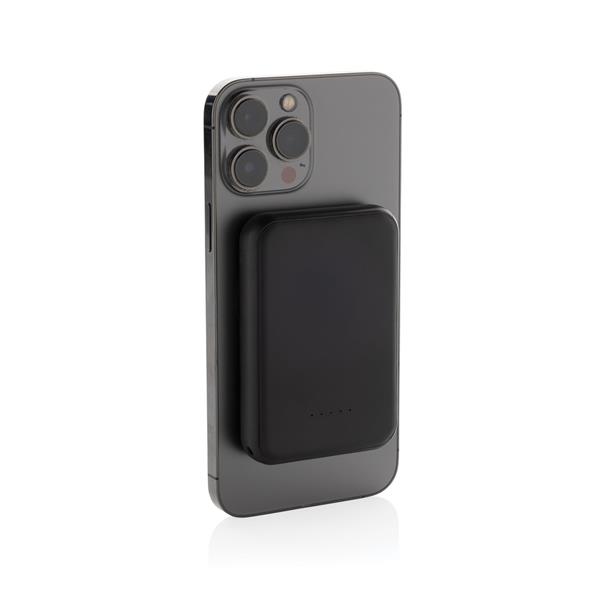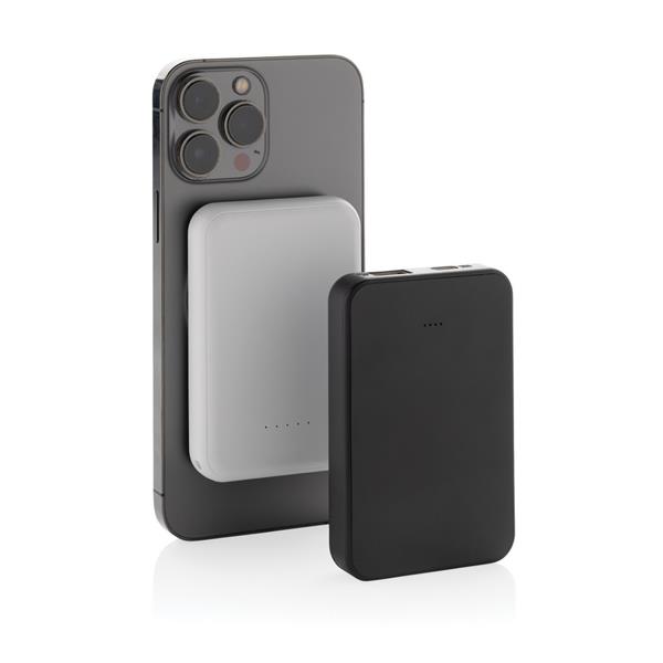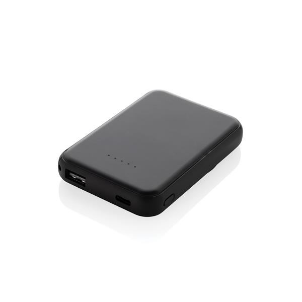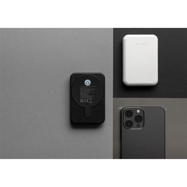 Magnetyczny bezprzewodowy power bank 5000 mAh, 5W Stellar, wykonany z certyfikowanego tworzywa RCS z recyklingu, wskaźnik poziomu naładowania, bateria litowo-polimerowa klasy A, wejście USB-C 5V/2.4A, wyjścia USB-C i USB-A 5V/2A, ładowarka magnetyczna, kabel z certyfikowanego TPE z recyklingubez PVC