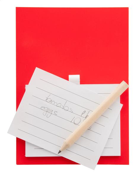 Kolorowy notatnik magnetyczny na lodówkę z drewnianym mini ołówkiem. 40 kartkowy. Description: Kolorowy notatnik magnetyczny na lodówkę z drewnianym mini ołówkiem. 40 kartkowy. Primary Color: czerwony Material 1: Magnes Material 2: Plastik Material 3: Drewno Rozmiar: 99×139 mm Gramatura papieru: 70 g/m2