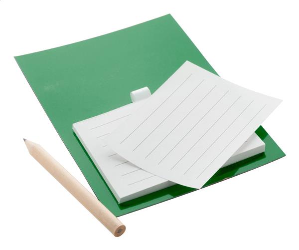 Kolorowy notatnik magnetyczny na lodówkę z drewnianym mini ołówkiem. 40 kartkowy. Description: Kolorowy notatnik magnetyczny na lodówkę z drewnianym mini ołówkiem. 40 kartkowy. Primary Color: zielony Material 1: Magnes Material 2: Plastik Material 3: Drewno Rozmiar: 99×139 mm Gramatura papieru: 70 g/m2