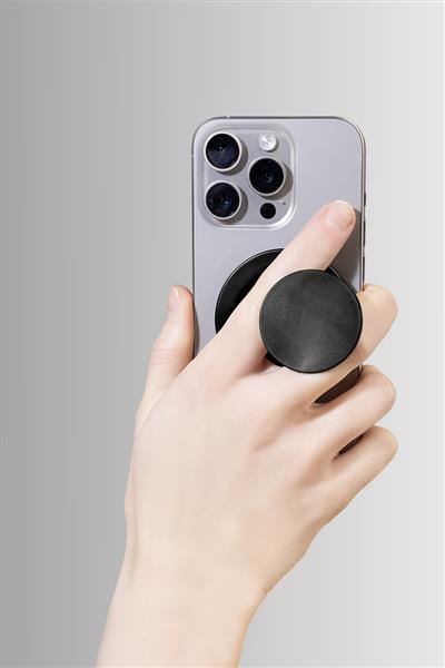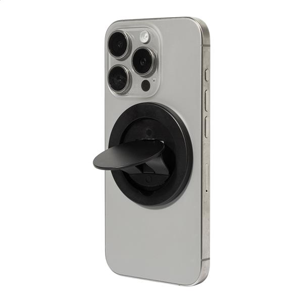 Magnetyczny uchwyt na telefon z recyklingowanego ABS. W zestawie samoprzylepny metalowy pierścień do telefonów bez powierzchni magnetycznej.