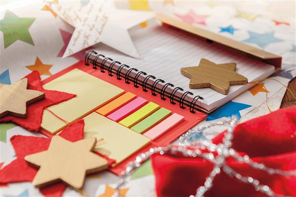 Notes MAGNY z blokiem w linie do pisania, 2 samoprzylepnymi karteczkami, 5 kolorami samoprzylepnych pasków, zawiera długopis, magnetyczne zamknięcie, z możliwością utylizacji.