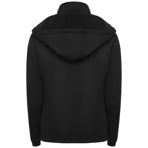 Lekka wodoodporna kurtka. Wysoki kołnierz i zwijany kaptur z regulacją. Podszewka z mikropolaru. Zamek błyskawiczny z przodu i osłona podbródka. Elastyczne mankiety. Dwie kieszenie boczne zapinane na zamek. Wewnętrzna kieszeń na lewej piersi. Usuwalna metka. Wodoodporna. Wiatroszczelna.