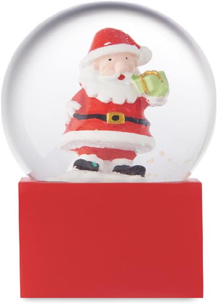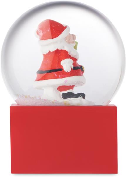 Mała świąteczna szklana kula śnieżna z podstawą z polyresinu.