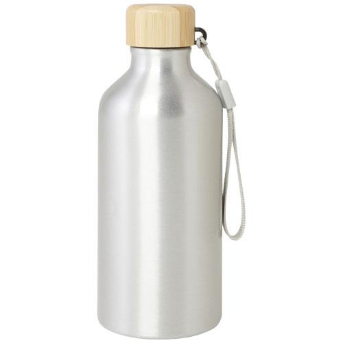 Butelka na wodę z aluminium pochodzącego z recyklingu z certyfikatem RCS, ze stylową bambusową pokrywką. Ta lekka, jednościenna butelka jest wyposażona w pasek ułatwiający przenoszenie. Bambus pochodzi ze zrównoważonych, ekologicznie i społecznie odpowiedzialnych źródeł. Pojemność 500 ml. Tylko do mycia ręcznego.