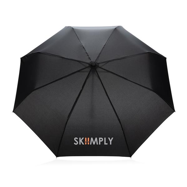 Parasol 20,5″, manualne otwieranie, metalowa rama i żebrowanie, uchwyt z bambusa, panele wykonane z 7,6 poddanych recyklingowi butelek PET (500 ml), dzięki zastosowaniu technologii AWARE™ wykorzystane materiały są identyfikowalne z pochodzenia, 2% wpływów z każdego sprzedanego produktu z kolekcji Impact jest przekazywane na rzecz Water.org