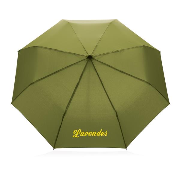 Parasol 20,5″, manualne otwieranie, metalowa rama i żebrowanie, uchwyt z bambusa, panele wykonane z 7,6 poddanych recyklingowi butelek PET (500 ml), dzięki zastosowaniu technologii AWARE™ wykorzystane materiały są identyfikowalne z pochodzenia, 2% wpływów z każdego sprzedanego produktu z kolekcji Impact jest przekazywane na rzecz Water.org