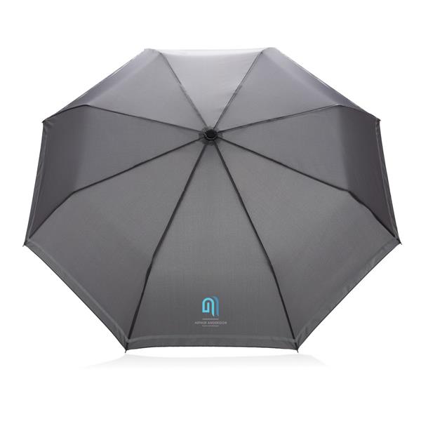 Parasol 20,5″, manualne otwieranie, metalowa rama i żebrowanie, uchwyt z PP, panele wykonane z 7,6 poddanych recyklingowi butelek PET (500 ml), dzięki zastosowaniu technologii AWARE™ wykorzystane materiały są identyfikowalne z pochodzenia, 2% wpływów z każdego sprzedanego produktu z kolekcji Impact jest przekazywane na rzecz Water.org
