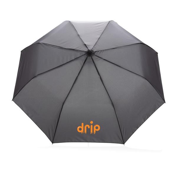 Parasol 21″ sztormowy, automatyczne otwieranie, metalowa rama, żebrowanie z włókna szklanego, uchwyt z ABS, panele wykonane z 7,7 poddanych recyklingowi butelek PET (500 ml), dzięki zastosowaniu technologii fizycznych znaczników AWARE™ wykorzystane materiały są identyfikowalne z pochodzenia, 2% wpływów z każdego sprzedanego produktu z kolekcji Impact jest przekazywane na rzecz Water.org