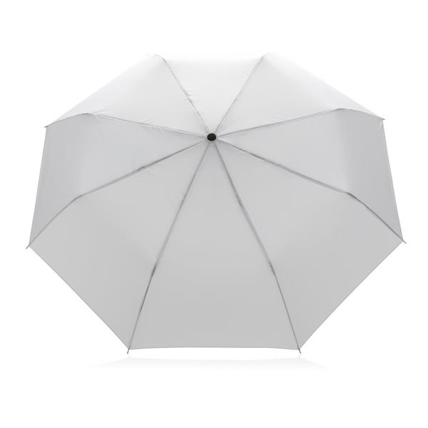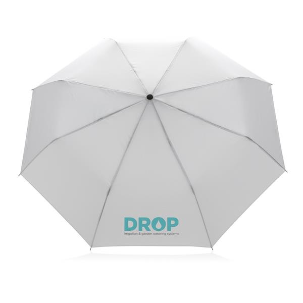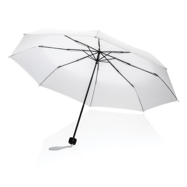 Parasol 21″, manualne otwieranie, metalowa rama, żebrowanie z włókna szklanego, uchwyt z PP, panele wykonane z 7,1 poddanych recyklingowi butelek PET (500 ml), dzięki zastosowaniu technologii AWARE™ wykorzystane materiały są identyfikowalne z pochodzenia, 2% wpływów z każdego sprzedanego produktu z kolekcji Impact jest przekazywane na rzecz Water.org
