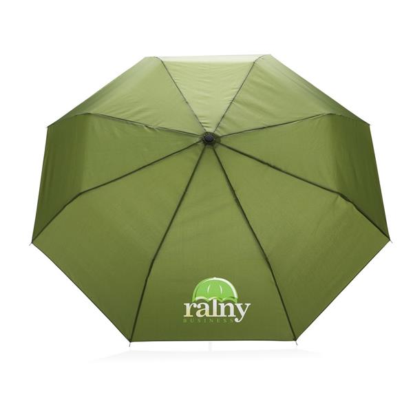 Parasol 21″, manualne otwieranie, metalowa rama, żebrowanie z włókna szklanego, uchwyt z PP, panele wykonane z 7,1 poddanych recyklingowi butelek PET (500 ml), dzięki zastosowaniu technologii AWARE™ wykorzystane materiały są identyfikowalne z pochodzenia, 2% wpływów z każdego sprzedanego produktu z kolekcji Impact jest przekazywane na rzecz Water.org