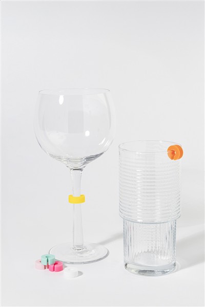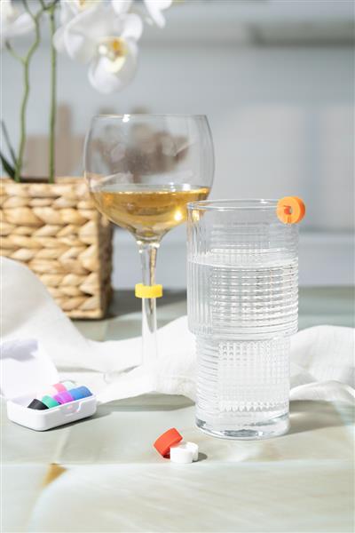 Kolorowy, 12-częściowy zestaw silikonowych markerów do szkła w pudełku z recyklingowanego PP.