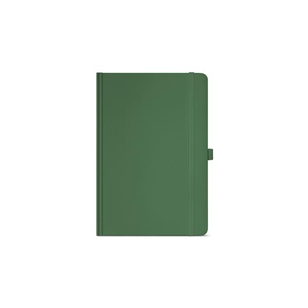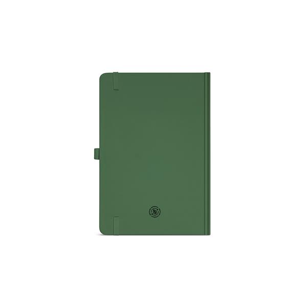 Nasz notatnik A5 ma okładkę z papieru pochodzącego z recyklingu i 196 stron w linie z kości słoniowej 70 gsm. Posiada wytrzymałą twardą okładkę, zaokrąglone rogi i wstążkową zakładkę. Posiada również elastyczne zamknięcie, rozszerzalną kieszeń i uchwyt na długopis.
