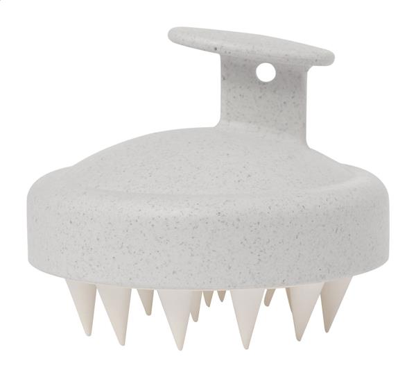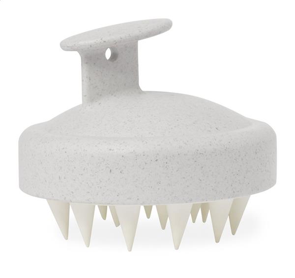 Description: Ekologiczna, plastikowa szczotka do masażu skóry głowy ze słomy pszennej z silikonowym włosiem. Primary Color: naturalny Material 2: Plastik Material 1: Słoma pszeniczna Rozmiar: o80×70 mm