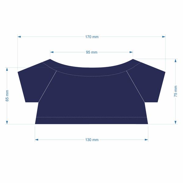 Maskotka przytulanka dla dzieci w granatowej koszulce, na której można wykonać znakowanie.