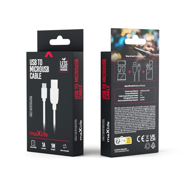 Kabel marki Maxlife ze złączem Micro USB. Klasyczny kabel, który świetnie sprawdzi się do ładowania głośników, słuchawek czy starszych modeli telefonu. Dzięki niemu sprawnie prześlesz dane między smartfonem a komputerem. Długość 1 metra gwarantuje swobodne podłączenie do urządzeń. Dużą zaletą jest jego elastyczność, dzięki czemu jest niezwykle funkcjonalny oraz wygodny w użyciu. Solidne wykonanie zapewnia prawidłowe funkcjonowanie kabla.