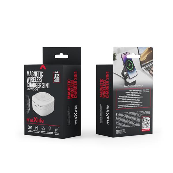 Ładowarka bezprzewodowa Maxlife 3w1 to kompaktowe i lekkie urządzenie, idealne do codziennego użytku w biurze oraz w podróży. Jej składana konstrukcja sprawia, że zajmuje minimalną ilość miejsca, co umożliwia łatwe przenoszenie w torbach czy walizkach.