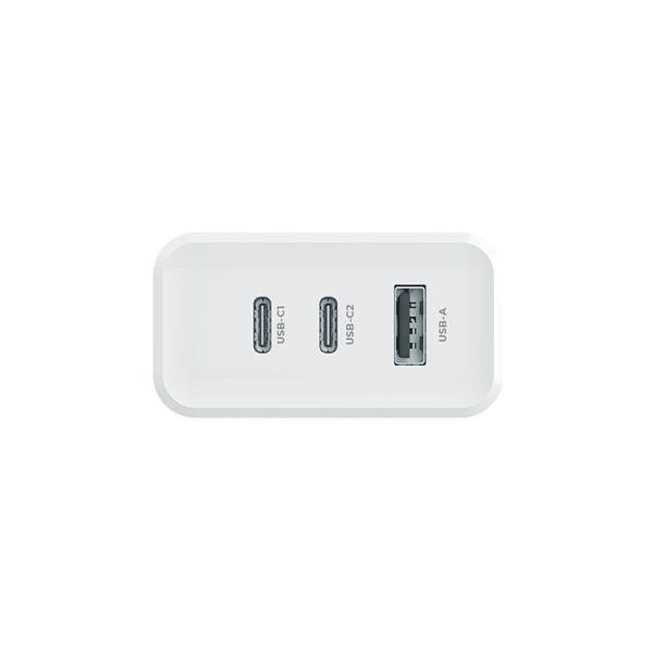 Ta ładowarka sieciowa została wykonana z wysokiej jakości materiałów, co gwarantuje jej trwałość. Jej solidna konstrukcja sprawia, że jest ona niezwykle wytrzymała. Wyposażona w trzy porty – USB oraz 2x USB-C – umożliwia równoczesne ładowanie trzech urządzeń jednocześnie.Jej największym atutem jest system inteligentnego dostosowywania parametrów prądowych do podłączonych urządzeń. Niezależnie od rodzaju urządzenia, system automatycznie dostosowuje optymalne ustawienia prądu, aby zapewnić szybkie i bezpieczne ładowanie. To rozwiązanie jest szczególnie ważne dla osób, które cenią sobie komfort i bezpieczeństwo podczas korzystania z ładowarki.