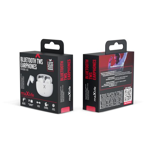 Słuchawki bezprzewodowe MXBE-03 TWS Maxlife to doskonałe połączenie wygody, jakości dźwięku i nowoczesnych technologii. Dzięki najnowszemu standardowi Bluetooth 5.3, zapewniają szybkie i stabilne połączenie. Oferują doskonałą jakość dźwięku, aby móc swobodnie prowadzić rozmowy i słuchać ulubionej muzyki.