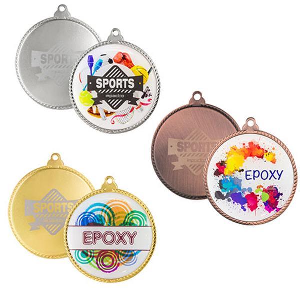 Okrągły medal z metalu. Rozmiar: 5 cm L2 (grawer laserowy): o 5 cm Kolor: Srebrny
