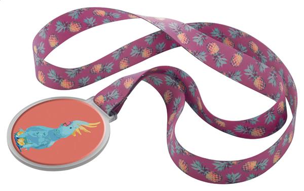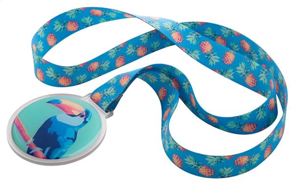 Personalizowany, akrylowy medal z epoxy domingiem. Z sublimacyjną smyczą z RPET. Cena zawiera sublimację i epoxy doming. Min. ilość: 100szt.