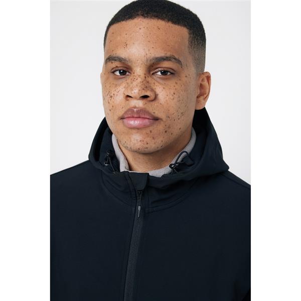 Męska kurtka softshell, wykonana z poliestru z recyklingu, 3 warstwowy materiał o gramaturze 300 g/m2, miękki polar wewnątrz, zapięcia mankietów na rzep, kaptur z regulacją, 2 kieszenie zamykane na zamek, wodoodporna dzięki zastosowanej technologii BIONIC-FINISH® ECO, wiatroszczelna i oddychająca konstrukcja, posiada certyfikat OEKO-TEX® STANDARD 100, posiada znacznik AWARE™, który gwarantuje, że wykorzystane materiały pochodzą z recyklingu, 2% wpływów z każdego sprzedanego produktu z kolekcji Impact jest przekazywane na rzecz Water.org, ślad węglowy produktu: 17,14 kg CO2