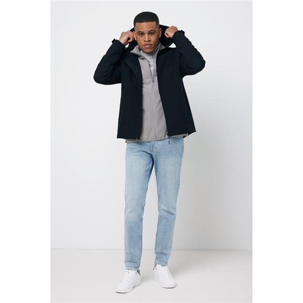 Męska kurtka softshell, wykonana z poliestru z recyklingu, 3 warstwowy materiał o gramaturze 300 g/m2, miękki polar wewnątrz, zapięcia mankietów na rzep, kaptur z regulacją, 2 kieszenie zamykane na zamek, wodoodporna dzięki zastosowanej technologii BIONIC-FINISH® ECO, wiatroszczelna i oddychająca konstrukcja, posiada certyfikat OEKO-TEX® STANDARD 100, posiada znacznik AWARE™, który gwarantuje, że wykorzystane materiały pochodzą z recyklingu, 2% wpływów z każdego sprzedanego produktu z kolekcji Impact jest przekazywane na rzecz Water.org, ślad węglowy produktu: 17,14 kg CO2