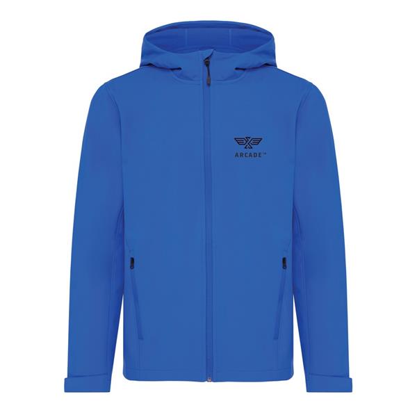 Męska kurtka softshell, wykonana z poliestru z recyklingu, 3 warstwowy materiał o gramaturze 300 g/m2, miękki polar wewnątrz, zapięcia mankietów na rzep, kaptur z regulacją, 2 kieszenie zamykane na zamek, wodoodporna dzięki zastosowanej technologii BIONIC-FINISH® ECO, wiatroszczelna i oddychająca konstrukcja, posiada certyfikat OEKO-TEX® STANDARD 100, posiada znacznik AWARE™, który gwarantuje, że wykorzystane materiały pochodzą z recyklingu, 2% wpływów z każdego sprzedanego produktu z kolekcji Impact jest przekazywane na rzecz Water.org, ślad węglowy produktu: 17,14 kg CO2