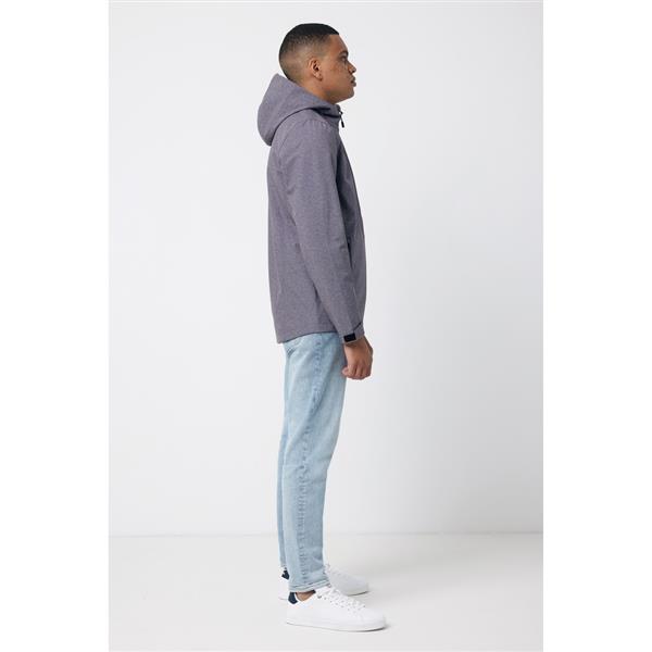 Męska kurtka softshell, wykonana z poliestru z recyklingu, 3 warstwowy materiał o gramaturze 300 g/m2, miękki polar wewnątrz, zapięcia mankietów na rzep, kaptur z regulacją, 2 kieszenie zamykane na zamek, wodoodporna dzięki zastosowanej technologii BIONIC-FINISH® ECO, wiatroszczelna i oddychająca konstrukcja, posiada certyfikat OEKO-TEX® STANDARD 100, posiada znacznik AWARE™, który gwarantuje, że wykorzystane materiały pochodzą z recyklingu, 2% wpływów z każdego sprzedanego produktu z kolekcji Impact jest przekazywane na rzecz Water.org, ślad węglowy produktu: 17,2 kg CO2