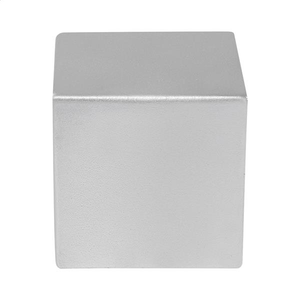 Antystres w kształcie sześcianu wykonany z pianki PU z metalicznym wykończeniem.