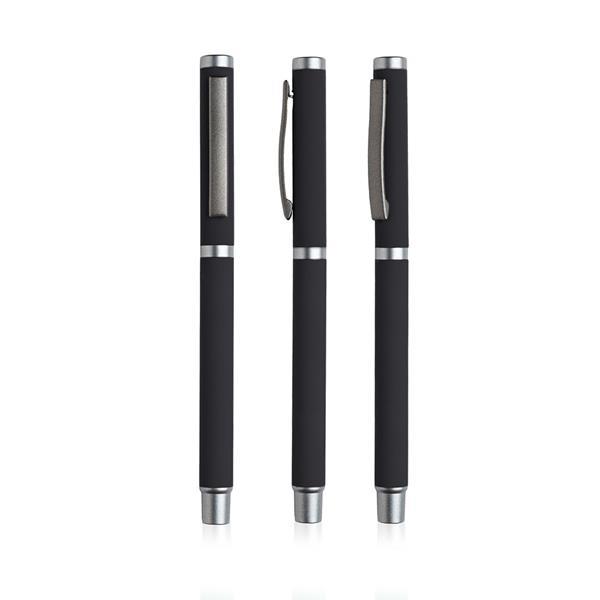 Metalowe pióro kulkowe soft touch z niebieskim wkładem Rozmiar: 13,9 x 1 cm L1 (grawer laserowy): 3 x 0,5 DC0 (długopisy, zapalniczki): 4 x 0,5 Kolor: Czarny