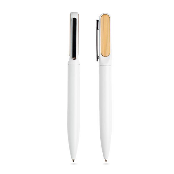 Elegancki metalowy długopis z dwoma bambusowymi elementami, które idealnie nadają się do znakowania laserowego. Rozmiar: 14 x 0,5 cm L1 (grawer laserowy): 3 x 0,7 Kolor: Biały