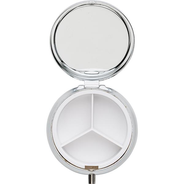 Metalowy pojemnik na tabletki z 3 przegrodami, lusterko w wieczku
