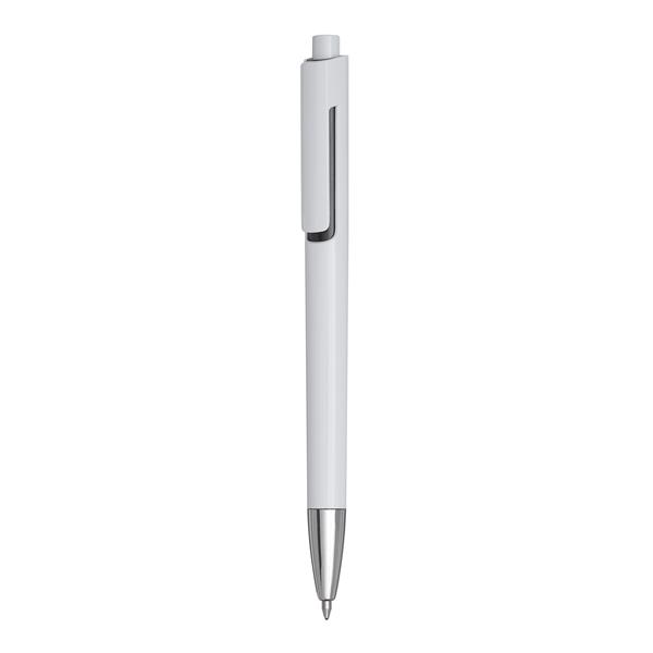 Długopis MIAMI z mechanizmem przyciskowym, kolorowym akcentem pod klipem, dużym wkładem z czarnym tuszem, długość pisania ok. 1000 m. Materiał: Plastik Kolor: biały, czarny Tagi: Długopisy,długopisy,akcesoria biurowe,przybory do pisania