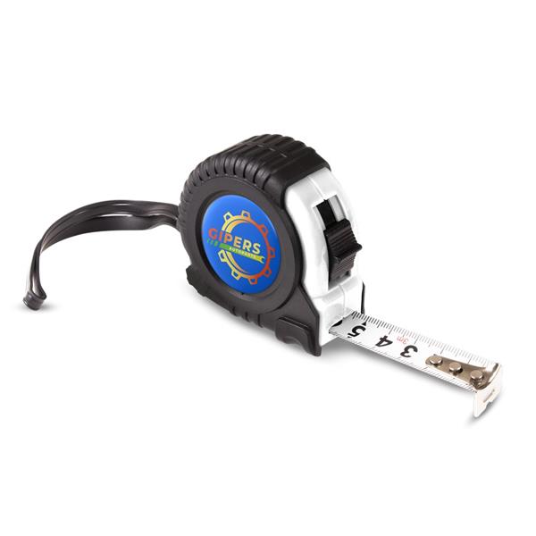 Miara 3 m z uchwytem ułatwiającym noszenie, klipem umożliwiającym przypięcie np. do paska, mechanizmem blokującym, korpusem pokrytym gumą, produkt wykonany z PP