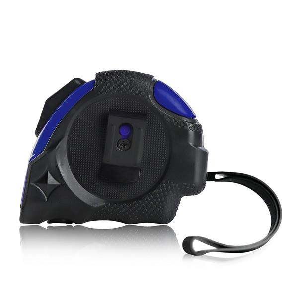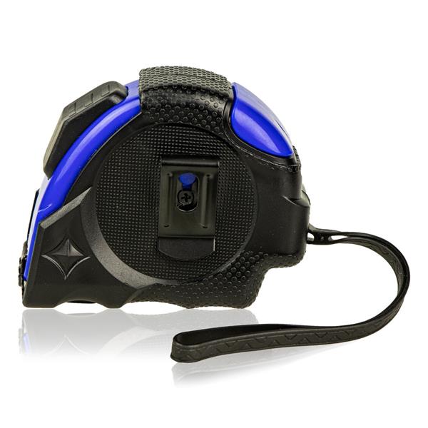 Miara 5 m z uchwytem ułatwiającym noszenie oraz dodatkowym klipem umożliwiającym przyczepienie np. do paska, na końcu znajduje się magnetyczny zaczep ułatwiający korzystanie z miary, produkt wykonany z metalu i plastiku