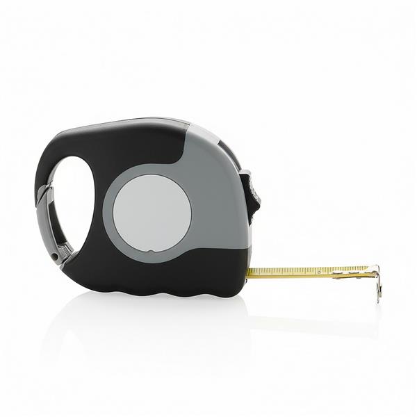 Miara 5 m z karabińczykiem, przycisk samozamykający, żółta taśma o szerokości 19 mm z dwoma silnymi magnesami na zaczepie, obudowa wykonana z ABS, uchwyt z TPR, posiada klip do paska, na obudowie matowa naklejka z PVC pod nadruk, wzór zastrzeżony®, ślad węglowy produktu: 1,38 kg CO2