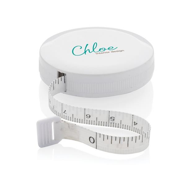 Miara do ciała 1,5 m/60″, taśma o szerokości 8 mm, przycisk stop, wykonana z ABS z recyklingu z certyfikatem RCS i włókna szklanego, całkowita zawartość materiałów z recyklingu obliczona w oparciu o wagę całkowitą przedmiotu: 64%, w pudełku z papieru kraftowego