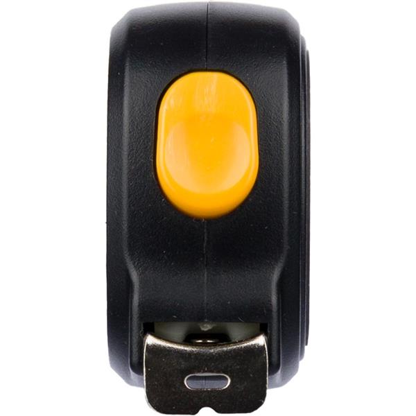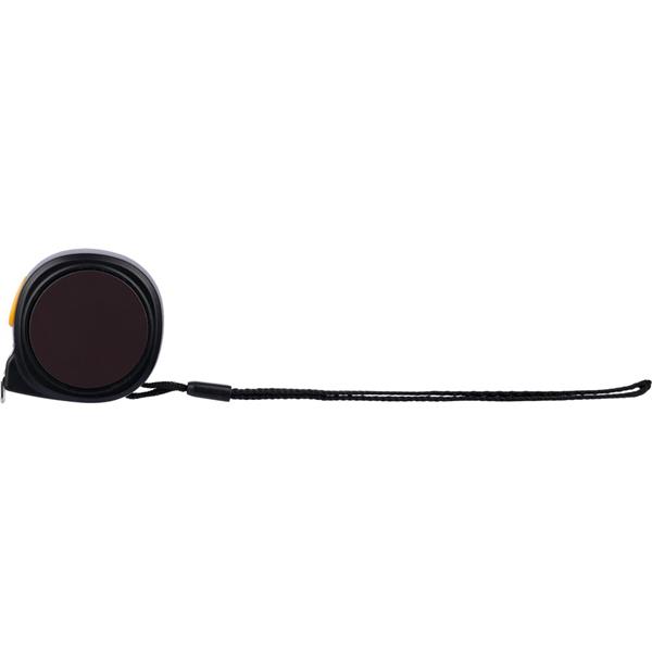 Miarka magnetyczna o długości 3 metrów, cale i centymetry, przycisk na wierzchu zwalniający blokadę, opaska na nadgarstek, zapakowana pojedynczo w brązowy kartonik, produkt wykonany z ABS, metalu i poliestru