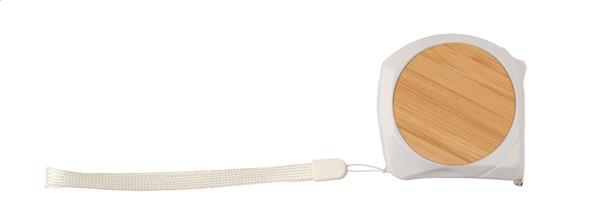 Miarka z plastiku i bambusa z funkcją blokady, metalowym klipem i paskiem na rękę, 5 m. Description: Miarka z plastiku i bambusa z funkcją blokady, metalowym klipem i paskiem na rękę, 5 m. Primary Color: biały Material 1: Plastik Material 3: Metal Material 2: Bambus Rozmiar: 65×65×37 mm