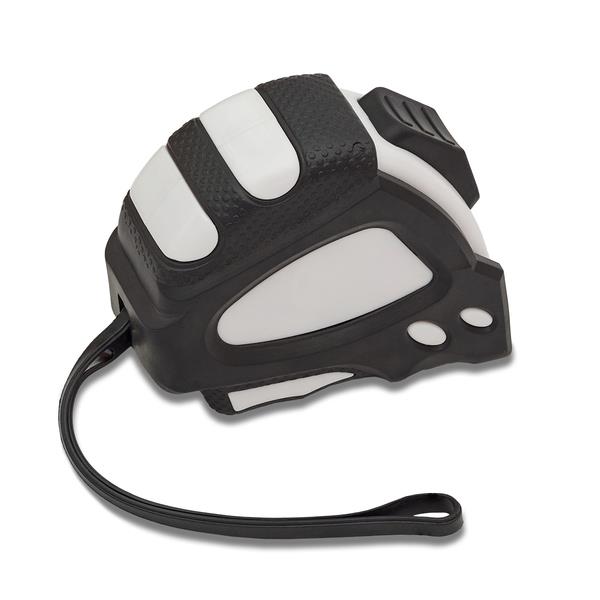 Zwijana miarka 5 m wykonana ze stali węglowej i plastiku ABS. Skala w cm i calach. Dodatkowo wyposażona w zaczep do paska.