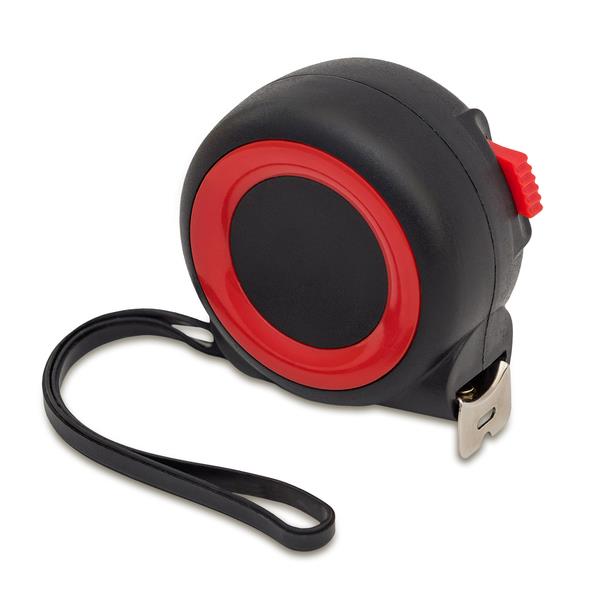 Zwijana miarka 5 m wykonana ze stali węglowej i plastiku ABS. Skala w cm i calach. Dodatkowo wyposażona w zaczep do paska.