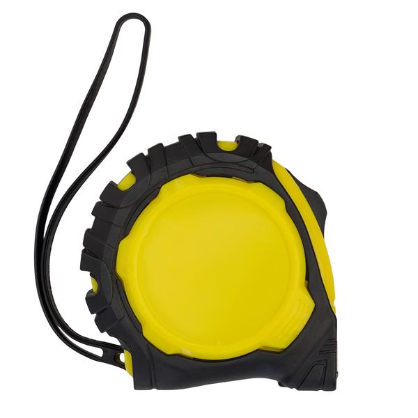 Zwijana miarka 5-metrowa wykonana z metalu i plastiku. Podziałka w cm i calach. Zaczep do paska.