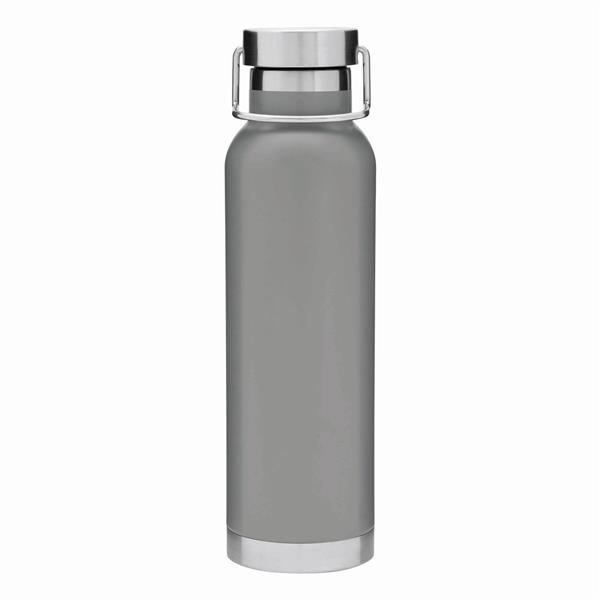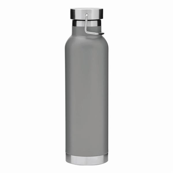 Butelka próżniowa MILITARY ze stali nierdzewnej. Izolacja próżniowo-miedziana, dwuścienna, z zakrętką. Pojemność ok. 650 ml.